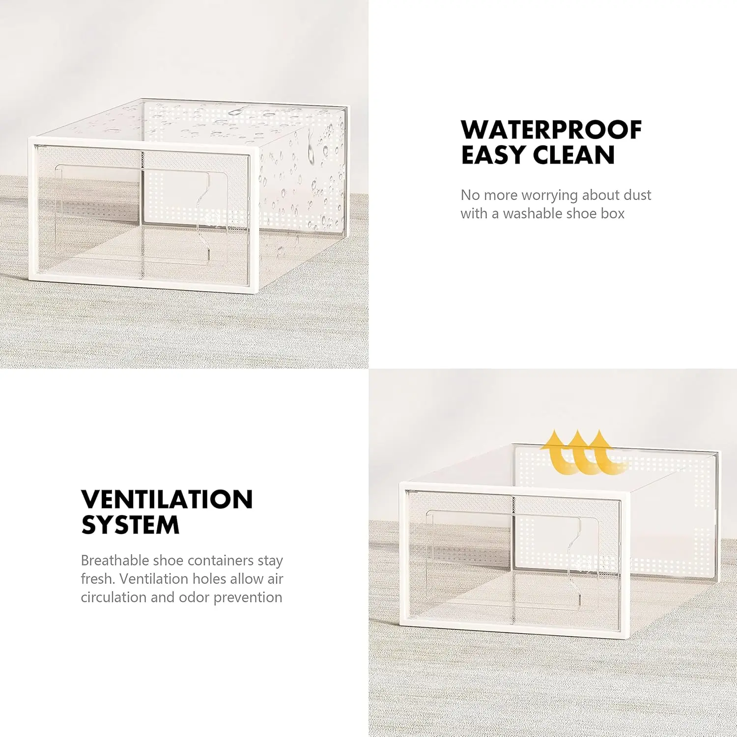 Keep your footwear neatly organized and easy to find with this 12-pack of clear stackable shoe storage boxes. Designed to save space, these foldable organizers let you maximize your closet while protecting your shoes from dust and damage. The transparent design allows for quick identification, while the sturdy, stackable structure ensures a clean and clutter-free look. Perfect for any home, they make shoe storage simple, stylish, and efficient.
