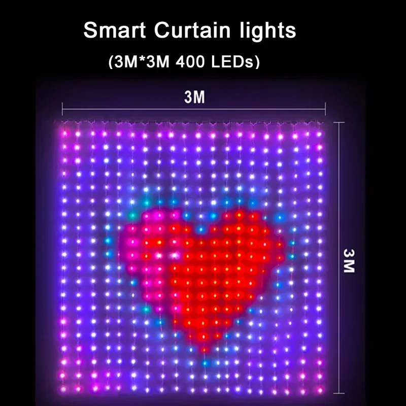 【Programmable Curtain Lighting】 The curtain lights outdoor indoor can create lights with any pattern and text through the LED APP. Perfect for write your lover's name and what you want to say to her during proposal, wedding and anniversary
