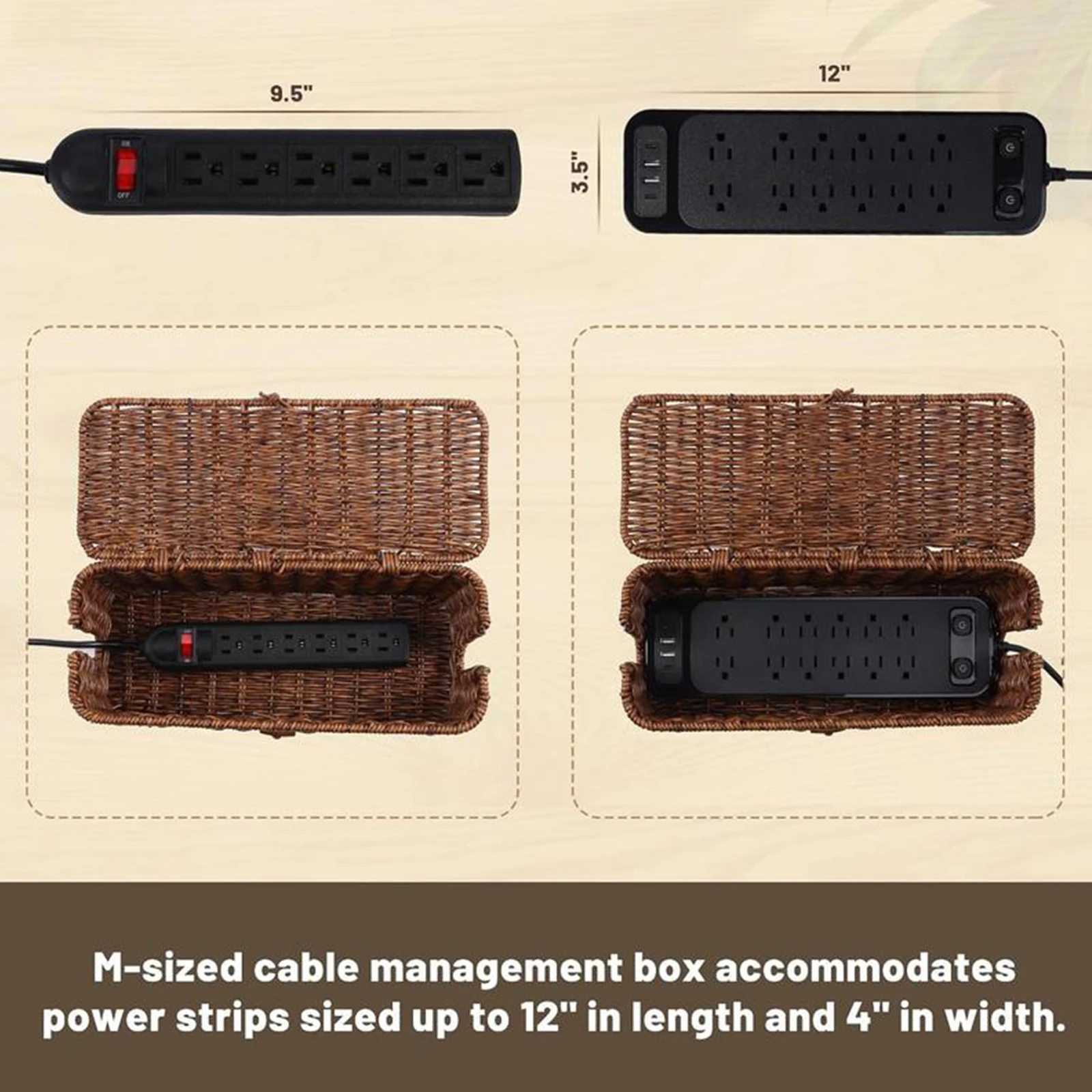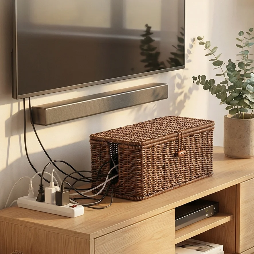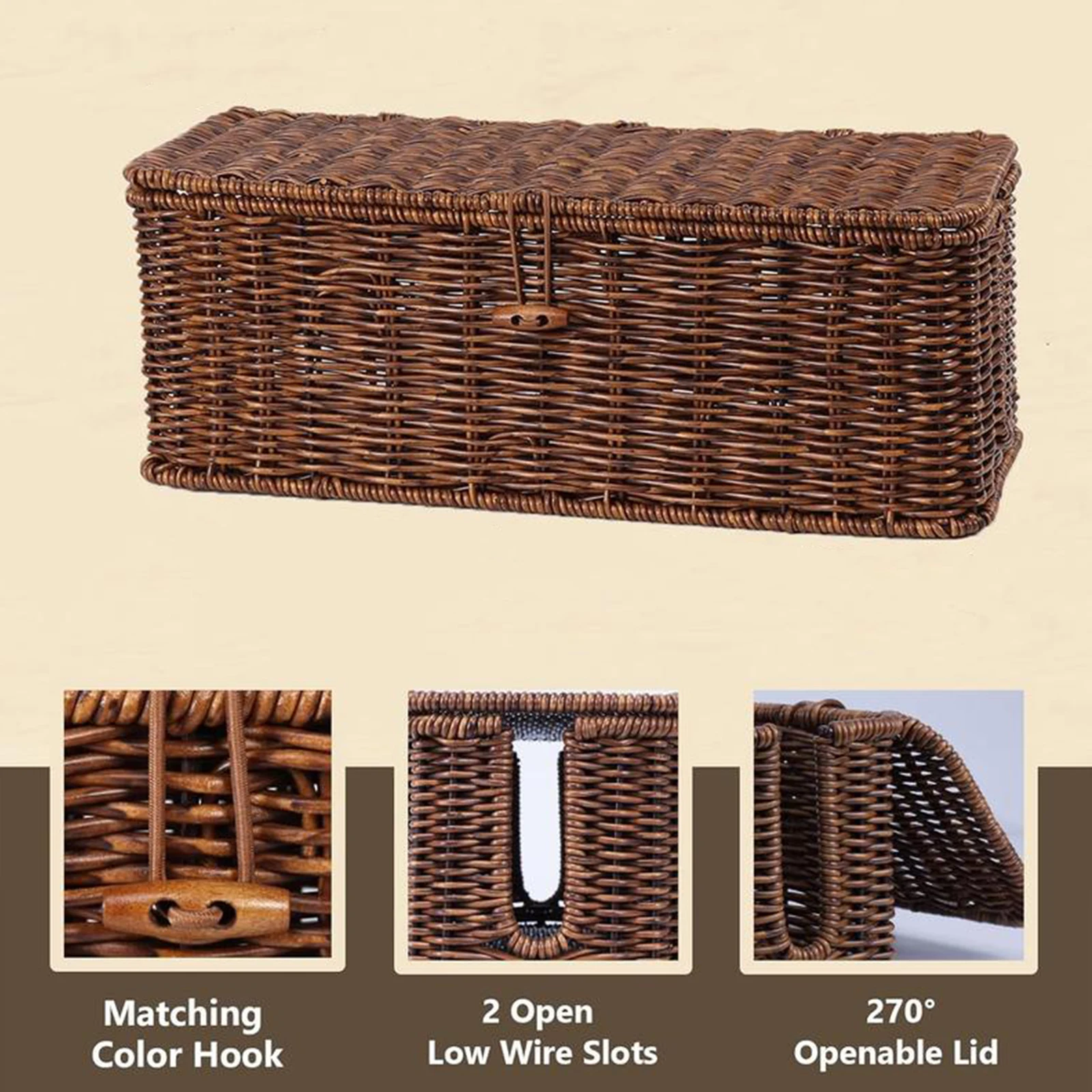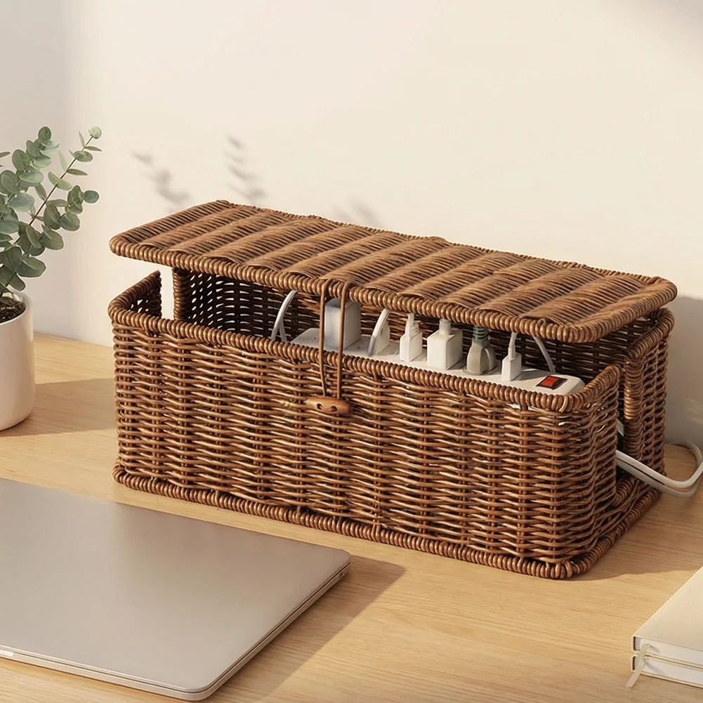 Keep your space tidy and safe with this stylish wicker cable management box. Handwoven for a natural, decorative look, it neatly conceals power strips and tangled cords while protecting children and pets from electrical hazards. The flip-top lid allows easy access, and the breathable design supports proper heat dissipation. Perfect for desks, living rooms, or offices, it combines functionality with elegant organization.